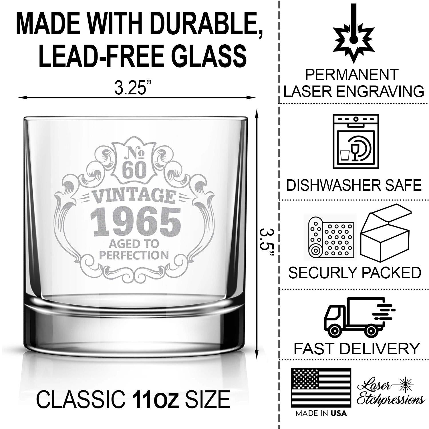 60th Birthday Engraved Whiskey Glass, Custom Engraved Rocks Glass, Vintage 1965 Aged to Perfection 11oz Old Fashioned Cocktail Glass
