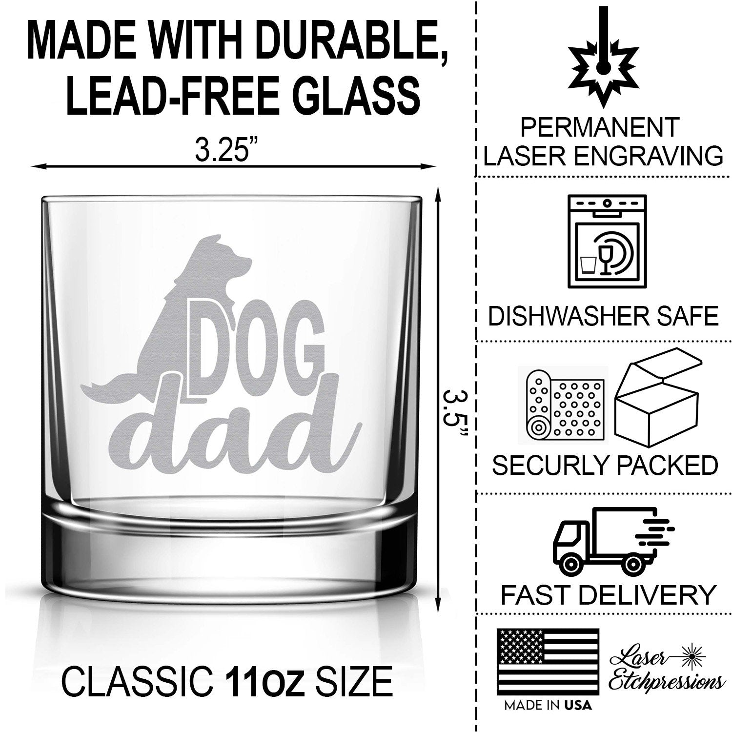 Dog Dad Engraved Whiskey Glass • 11oz Old Fashioned Cocktail Rocks Glass for Dad • Great Gift for Father, Grandfather, Husband, Son, Friend