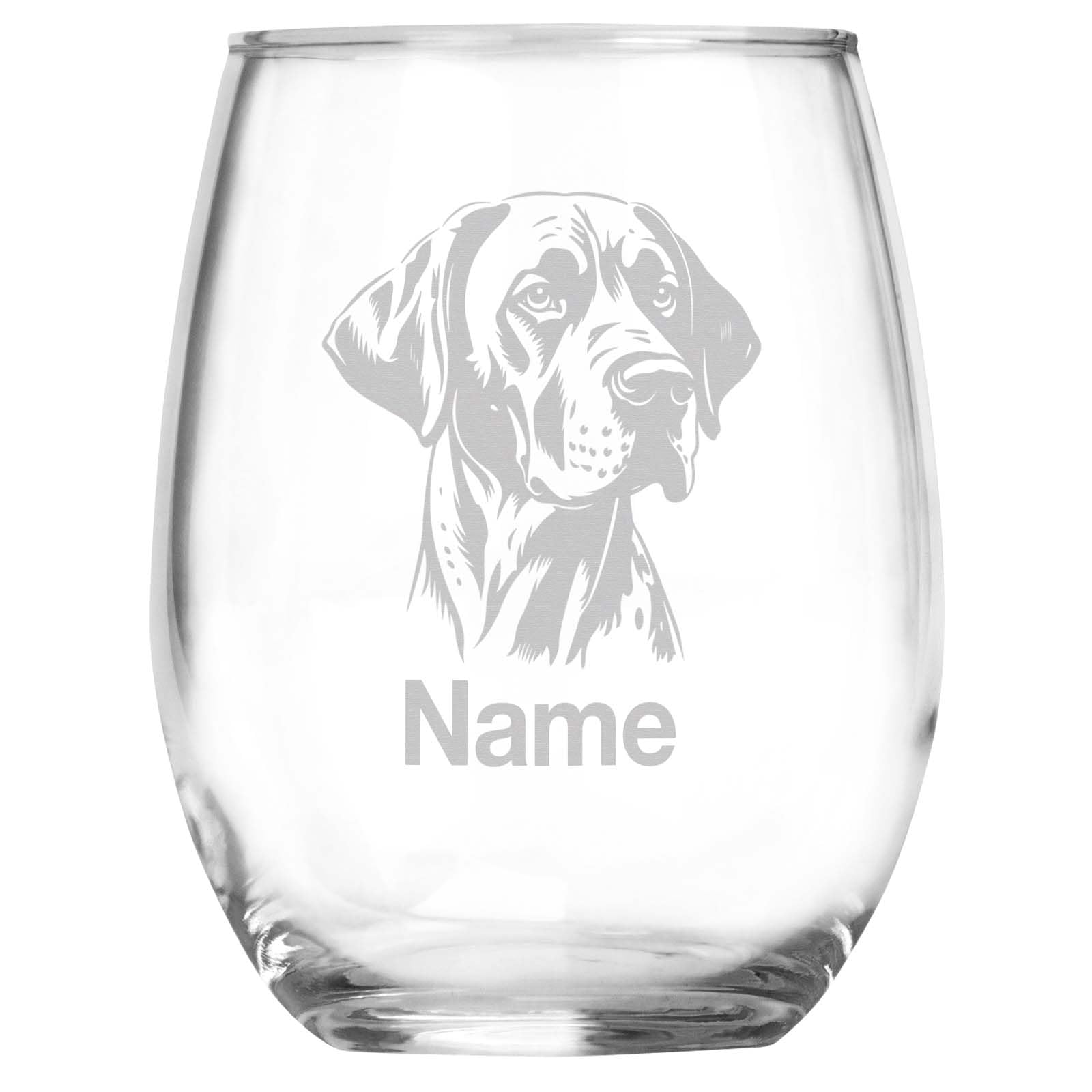 Personalized Great Dane Breed Themed Stemless Wine Glass with Custom Name, Engraved Dog Lovers Gift, Unique Pet Owner Keepsake for Dog Mom or Dad