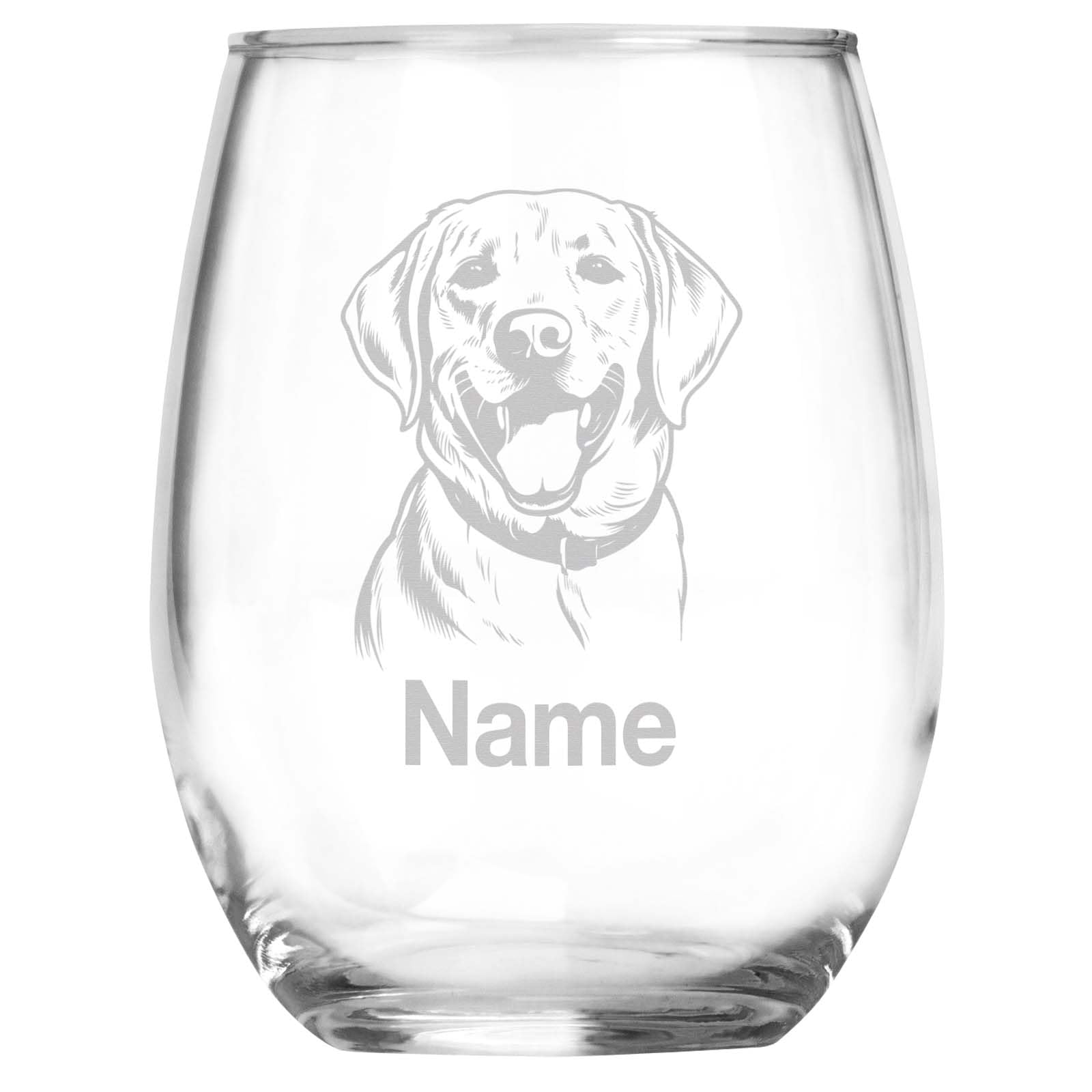 Personalized Labrador Retriever Breed Themed Stemless Wine Glass with Custom Name, Engraved Dog Lovers Gift, Unique Pet Owner Keepsake for Dog Mom or Dad