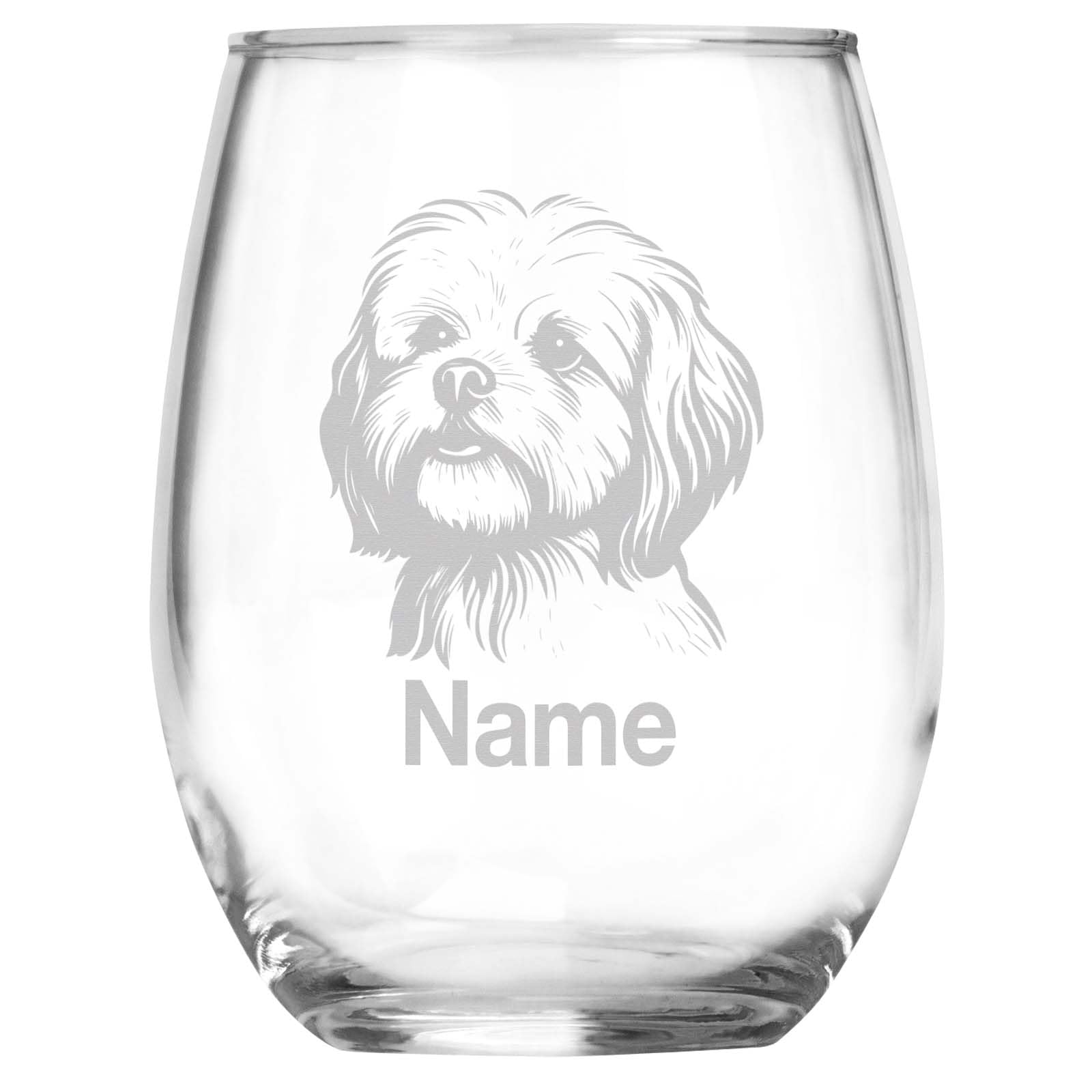 Personalized Maltese Breed Themed Stemless Wine Glass with Custom Name, Engraved Dog Lovers Gift, Unique Pet Owner Keepsake for Dog Mom or Dad