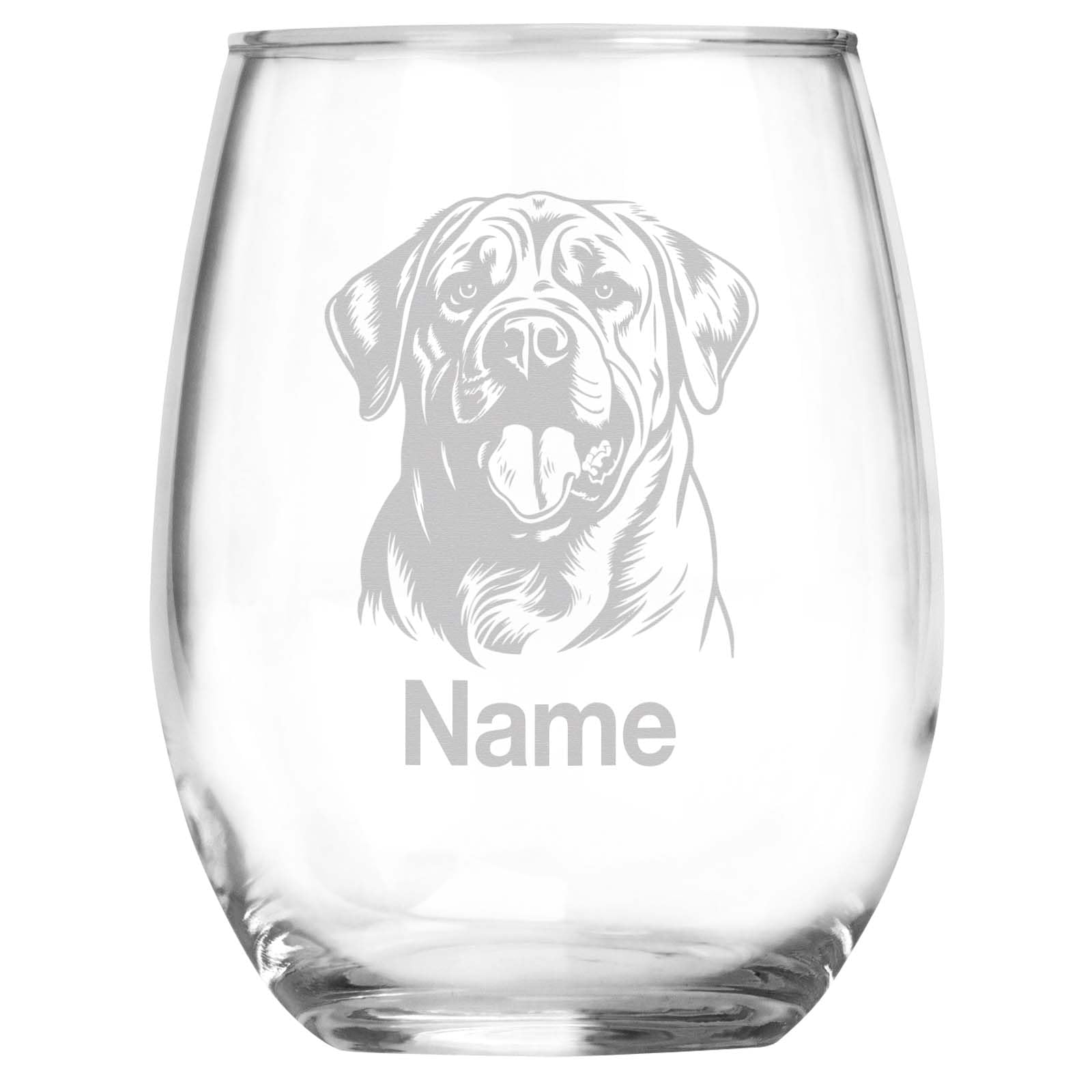 Personalized Mastiff Breed Themed Stemless Wine Glass with Custom Name, Engraved Dog Lovers Gift, Unique Pet Owner Keepsake for Dog Mom or Dad