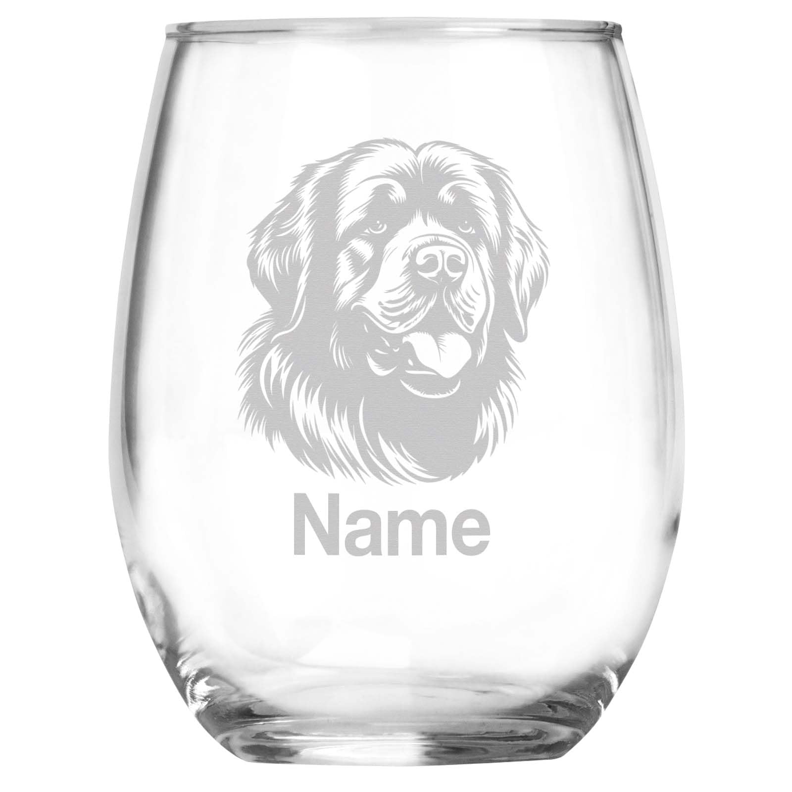 Personalized Newfoundland Breed Themed Stemless Wine Glass with Custom Name, Engraved Dog Lovers Gift, Unique Pet Owner Keepsake for Dog Mom or Dad