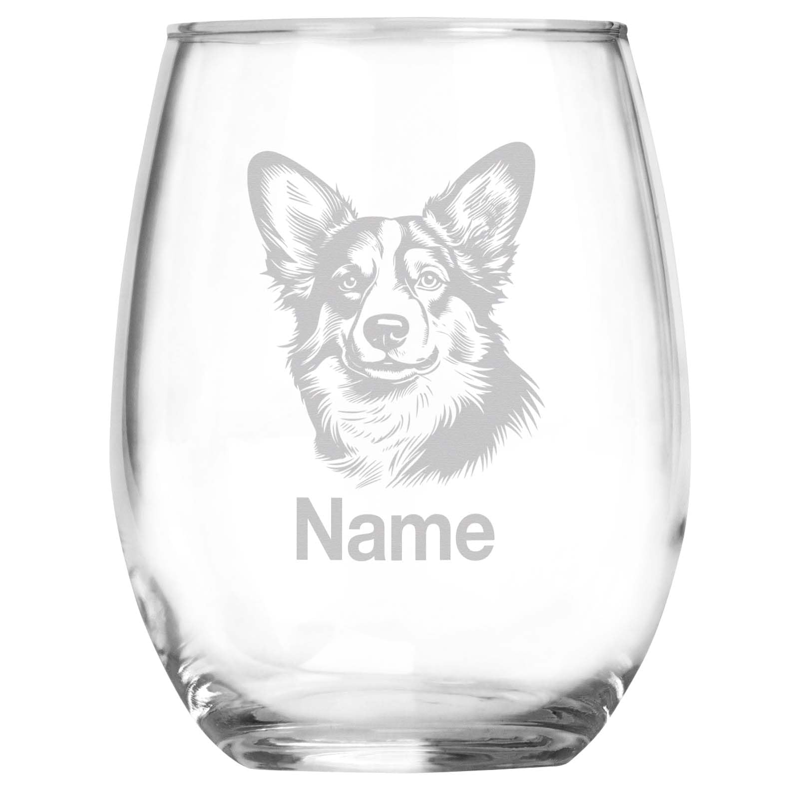 Celebrate Your Loyal Companion with a Personalized Pembroke Welsh Corgi Wine Glass! Pembroke Welsh Corgis are known for their friendly nature, intelligence, and loving personality, making them one of the most adored herding breeds. Honor your lovable Corgi with a beautifully engraved stemless wine glass, featuring a detailed Corgi head portrait and a custom name of your choice. This personalized keepsake captures the breed's charming and playful features, making it a unique tribute to your devoted companion. Crafted from high-quality glass, this 15oz stemless wine glass is perfect for any occasion, whether you're sipping wine, cocktails, or simply enjoying a relaxing drink. The laser-etched engraving will stay vibrant for years. Celebrate your Pembroke Welsh Corgi's joyful spirit with this custom keepsake!