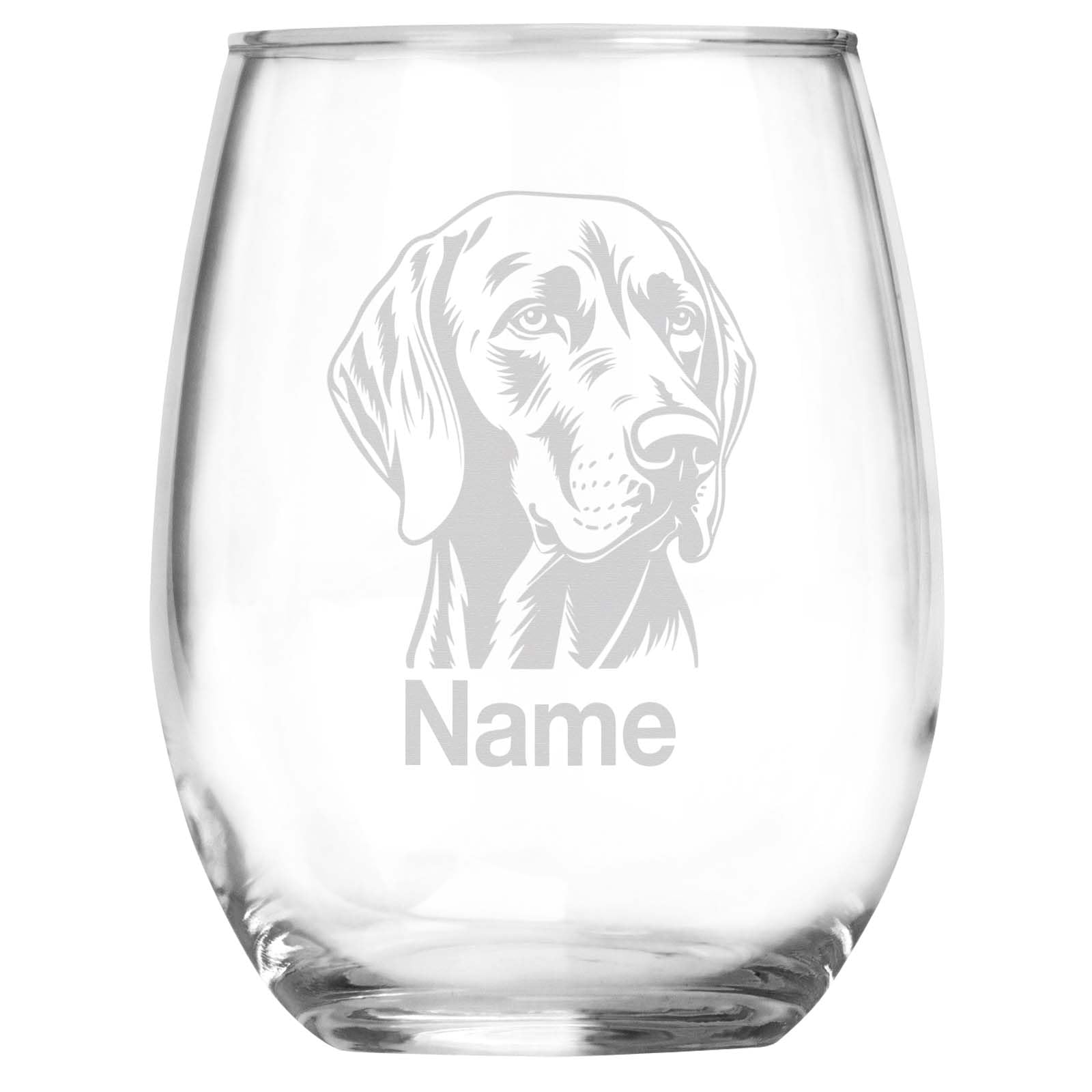 Celebrate Your Loyal Companion with a Personalized Vizsla Wine Glass! Vizslas are known for their affectionate nature, high energy, and beautiful rust-colored coats, making them an exceptional breed for active and loving dog owners. Honor your devoted Vizsla with a beautifully engraved stemless wine glass, featuring a detailed head portrait and a custom name of your choice. This personalized keepsake captures the breed's graceful features and loving expression, making it a wonderful tribute to your loyal companion. Crafted from high-quality glass, this 15oz stemless wine glass is perfect for any occasion, whether you're enjoying wine, whiskey, or a relaxing drink. The laser-etched engraving will stay vibrant for years. Celebrate your Vizsla's loyalty and energy with this custom keepsake!