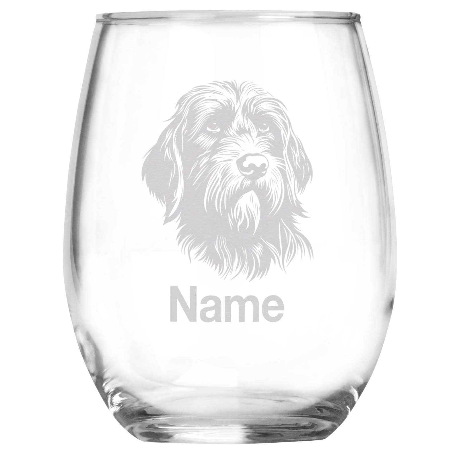 Personalized Wirehaired Pointing Griffon Breed Themed Stemless Wine Glass with Custom Name, Engraved Dog Lovers Gift, Unique Pet Owner Keepsake for Dog Mom or Dad
