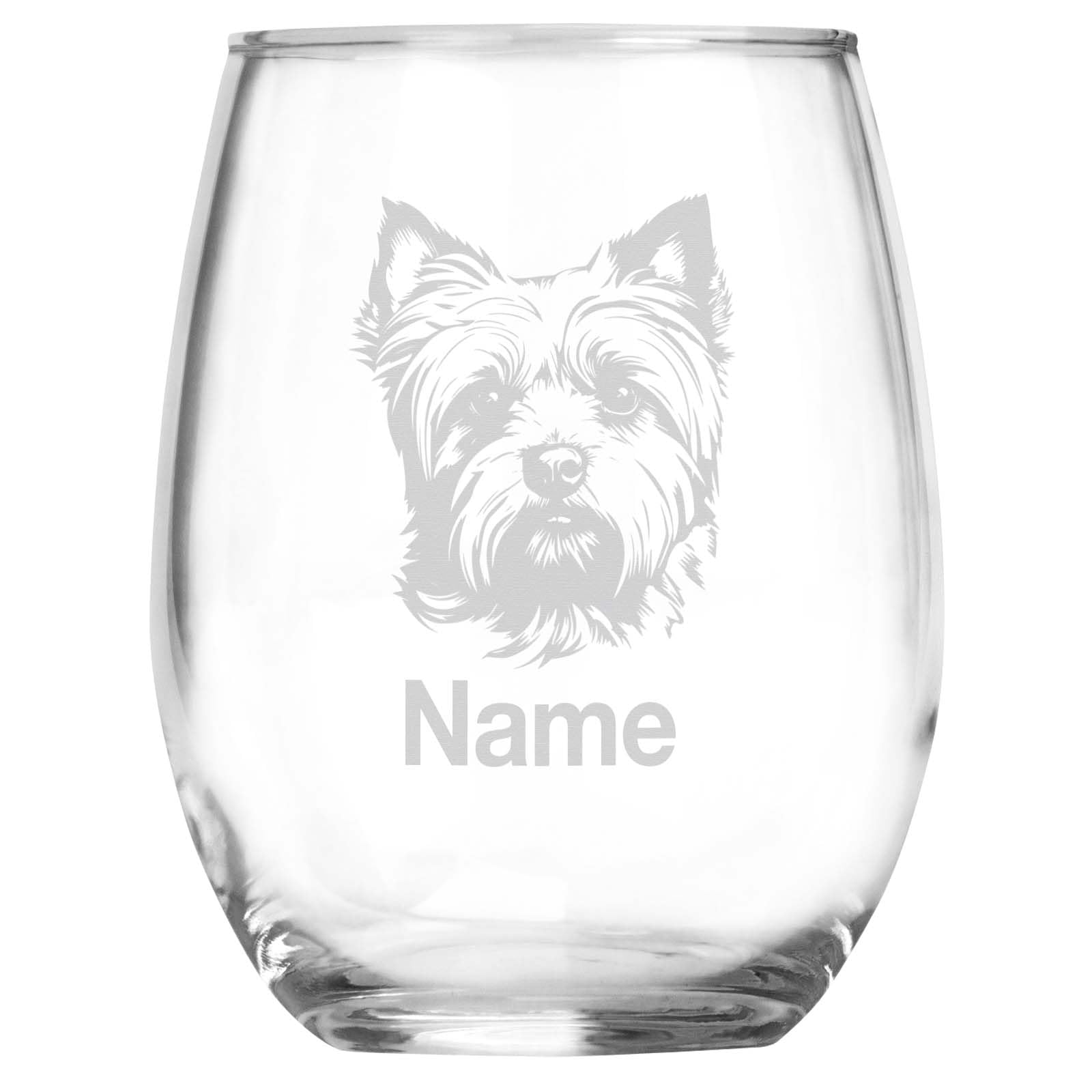 Personalized Yorkshire Terrier Breed Themed Stemless Wine Glass with Custom Name, Engraved Dog Lovers Gift, Unique Pet Owner Keepsake for Dog Mom or Dad